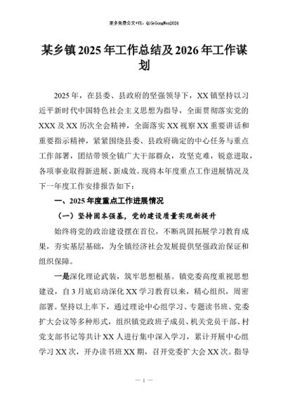 【七哥公文】2025年:某乡镇2025年工作总结及2026年工作谋划+更多免费公文+VX:QiGeGongWen2024