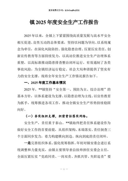 / 【七哥公文】2025年:镇2025年度安全生产工作报告+更多免费公文+VX:QiGeGongWen2024
