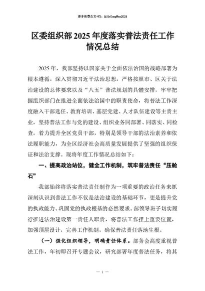 / 【七哥公文】2025年:区委组织部2025年度落实普法责任工作情况总结+更多免费公文+VX:QiGeGongWen2024
