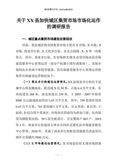 【七哥公文】2025年:关于XX县加快城区集贸市场市场化运作的调研报告+更多免费公文+VX:QiGeGongWen2024