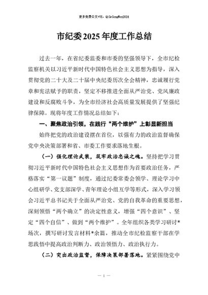/ 【七哥公文】2025年:市纪委2025年度工作总结+更多免费公文+VX:QiGeGongWen2024