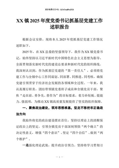 / 【七哥公文】2025年:XX镇2025年度党委书记抓基层党建工作述职报告+更多免费公文+VX:QiGeGongWen2024