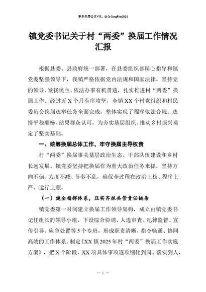 / 【七哥公文】2025年:镇党委书记关于村“两委”换届工作情况汇报+更多免费公文+VX:QiGeGongWen2024