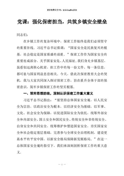 / 【七哥公文】2025年:党课:强化保密担当,共筑乡镇安全壁垒+更多免费公文+VX:QiGeGongWen2024