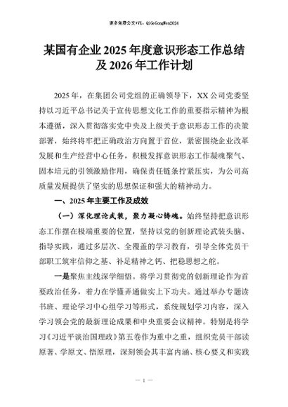 【七哥公文】2025年:某国有企业2025年度意识形态工作总结及2026年工作计划+更多免费公文+VX:QiGeGongWen2024