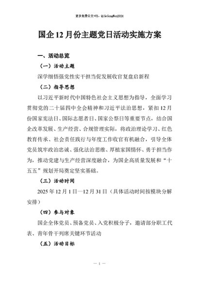 / 【七哥公文】2025年:国企12月份主题党日活动实施方案+更多免费公文+VX:QiGeGongWen2024