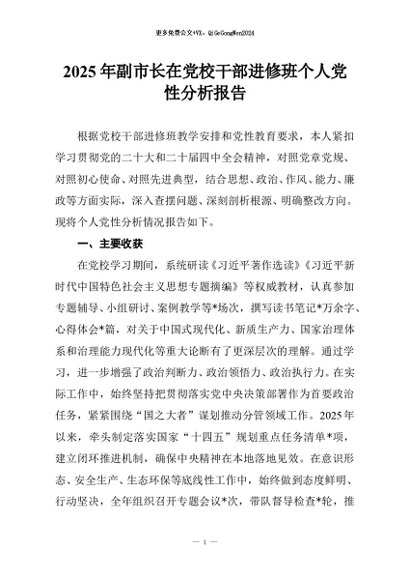 / 【七哥公文】2025年:2025年副市长在党校干部进修班个人党性分析报告+更多免费公文+VX:QiGeGongWen2024