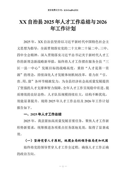 【七哥公文】2025年:XX自治县2025年人才工作总结与2026年工作计划+更多免费公文+VX:QiGeGongWen2024