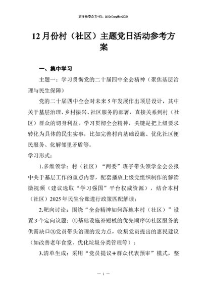 / 【七哥公文】2025年:12月份村(社区)主题党日活动参考方案+更多免费公文+VX:QiGeGongWen2024