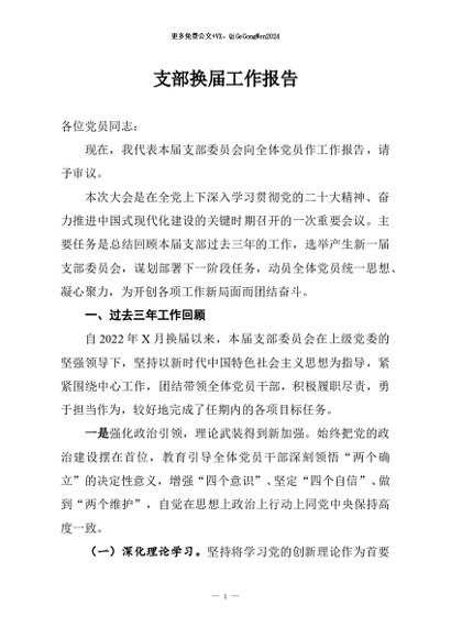 / 【七哥公文】2025年:支部换届工作报告+更多免费公文+VX:QiGeGongWen2024