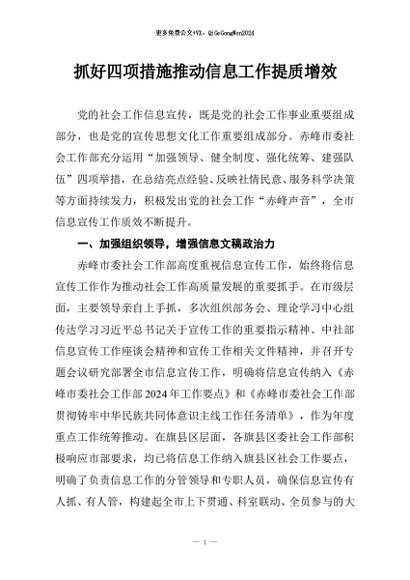 / 【七哥公文】2025年:抓好四项措施推动信息工作提质增效+更多免费公文+VX:QiGeGongWen2024