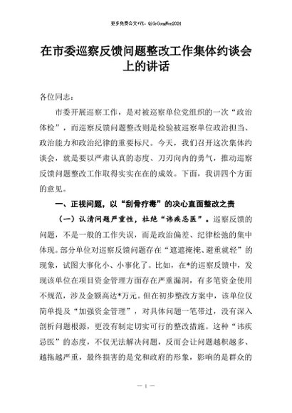 / 【七哥公文】2025年:在市委巡察反馈问题整改工作集体约谈会上的讲话+更多免费公文+VX:QiGeGongWen2024