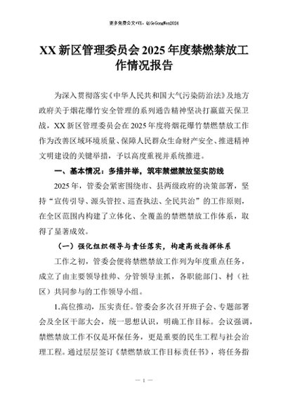 【七哥公文】2025年:XX新区管理委员会2025年度禁燃禁放工作情况报告+更多免费公文+VX:QiGeGongWen2024