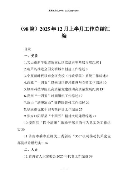 / 【七哥公文】2025年:(98篇)2025年12月上半月工作总结汇编+更多免费公文+VX:QiGeGongWen2024