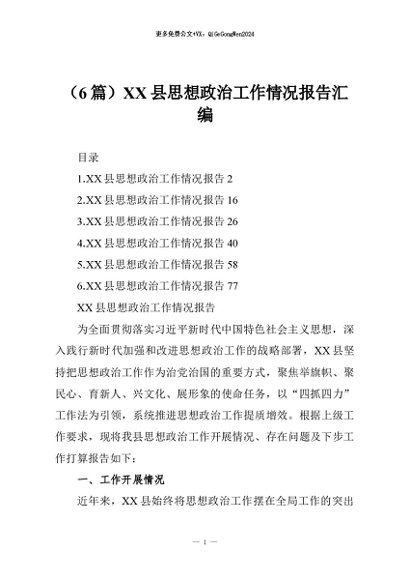 / 【七哥公文】2025年:(6篇)XX县思想政治工作情况报告汇编+更多免费公文+VX:QiGeGongWen2024