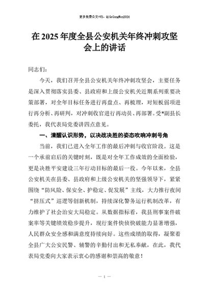 / 【七哥公文】2025年:在2025年度全县公安机关年终冲刺攻坚会上的讲话+更多免费公文+VX:QiGeGongWen2024