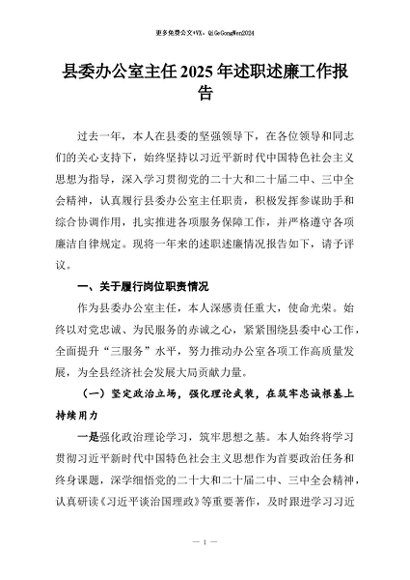 / 【七哥公文】2025年:县委办公室主任2025年述职述廉工作报告+更多免费公文+VX:QiGeGongWen2024