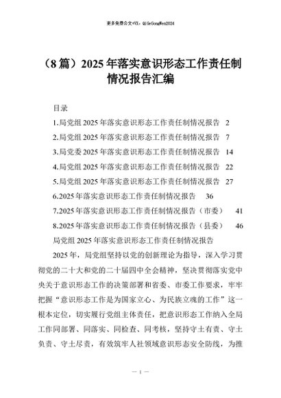 【七哥公文】2025年:(8篇)2025年落实意识形态工作责任制情况报告汇编+更多免费公文+VX:QiGeGongWen2024