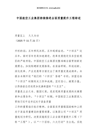 【七哥公文】2025年:中国航空工业集团持续推进全面质量提升工程综述_副本+更多免费公文+VX:QiGeGongWen2024