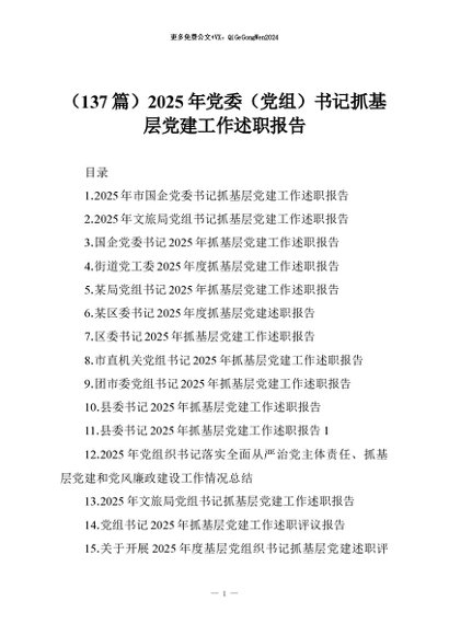 【七哥公文】2025年:(137篇)2025年党委(党组)书记抓基层党建工作述职报告+更多免费公文+VX:QiGeGongWen2024