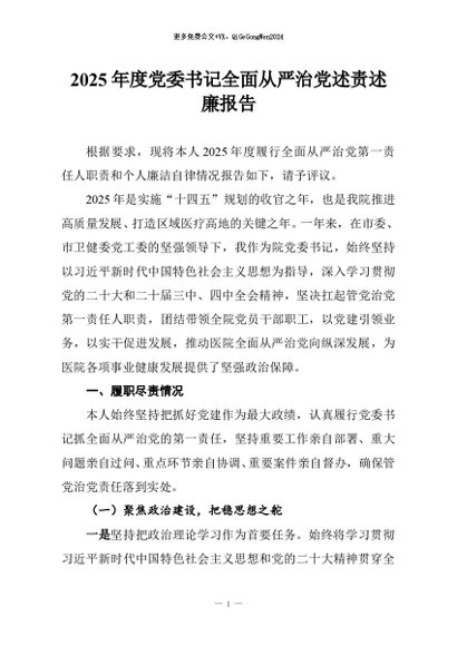 / 【七哥公文】2025年:2025年度党委书记全面从严治党述责述廉报告+更多免费公文+VX:QiGeGongWen2024