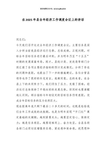 【七哥公文】2025年:在2025年县全年经济工作调度会议上的讲话_副本+更多免费公文+VX:QiGeGongWen2024