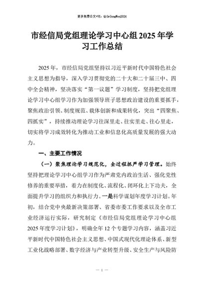 / 【七哥公文】2025年:市经信局党组理论学习中心组2025年学习工作总结+更多免费公文+VX:QiGeGongWen2024