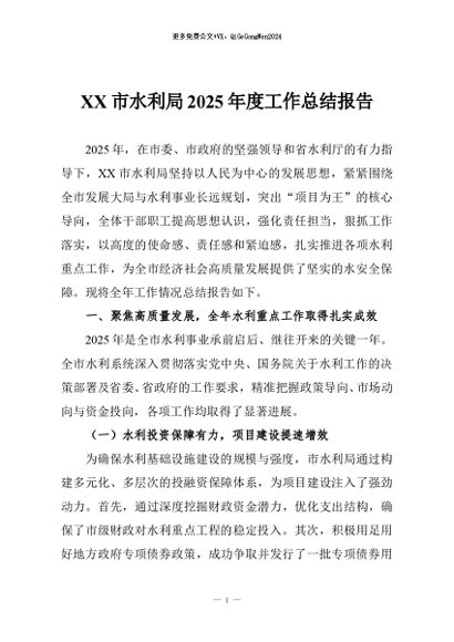 / 【七哥公文】2025年:XX市水利局2025年度工作总结报告+更多免费公文+VX:QiGeGongWen2024