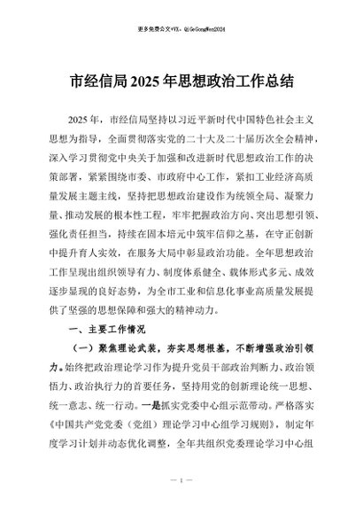 / 【七哥公文】2025年:市经信局2025年思想政治工作总结+更多免费公文+VX:QiGeGongWen2024