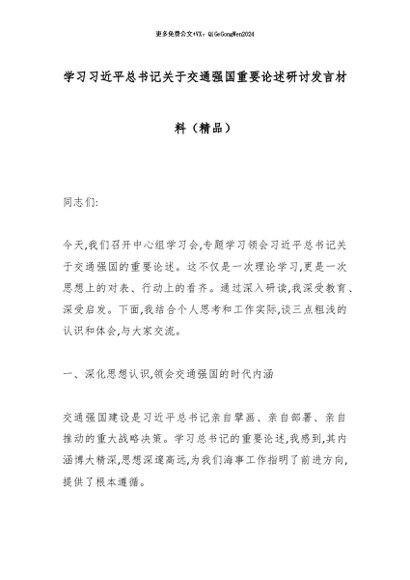 【七哥公文】2025年:学习总书记关于交通强国重要论述研讨发言材料(精品)_副本+更多免费公文+VX:QiGeGongWen2024