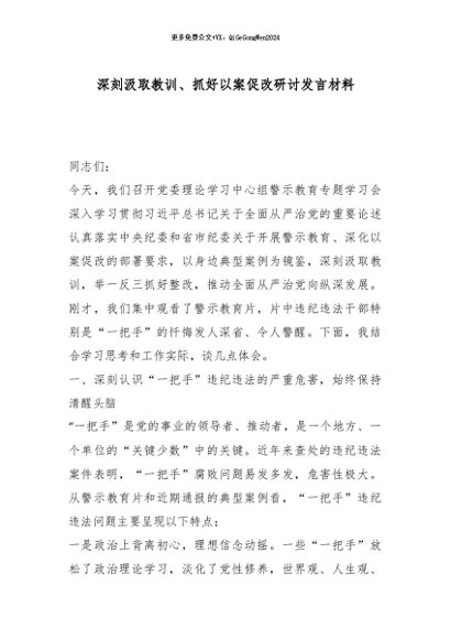 / 【七哥公文】2025年:深刻汲取教训、抓好以案促改研讨发言材料_副本+更多免费公文+VX:QiGeGongWen2024