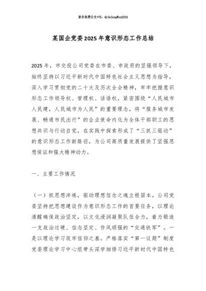 / 【七哥公文】2025年:某国企党委2025年意识形态工作总结_副本+更多免费公文+VX:QiGeGongWen2024
