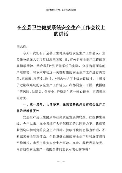/ 【七哥公文】2025年:在全县卫生健康系统安全生产工作会议上的讲话+更多免费公文+VX:QiGeGongWen2024
