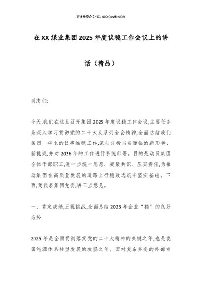 【七哥公文】2025年:在XX煤业集团2025年度议稳工作会议上的讲话(精品)_副本+更多免费公文+VX:QiGeGongWen2024
