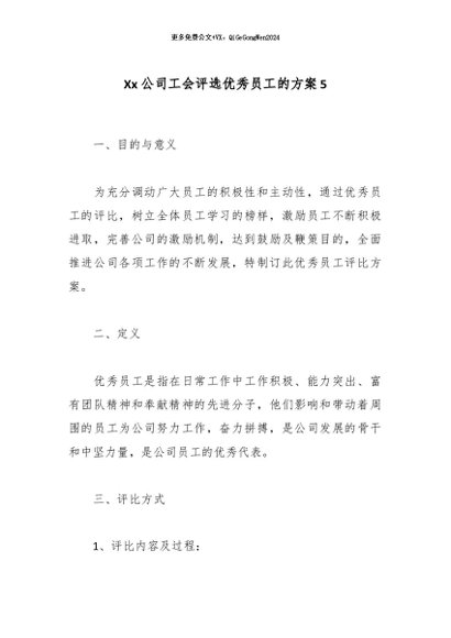 【七哥公文】2025年:Xx公司工会评选优秀员工的方案5_副本+更多免费公文+VX:QiGeGongWen2024