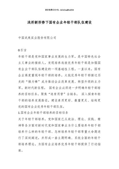 / 【七哥公文】2025年:浅析新形势下国有企业年轻干部队伍建设_副本+更多免费公文+VX:QiGeGongWen2024