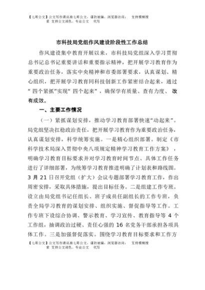 / 【七哥公文】2025年:市科技局党组作风建设阶段性工作总结+更多免费公文+VX:QiGeGongWen2024