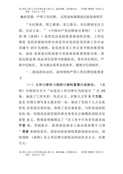 【七哥公文】2025年:廉政党课:严明工作纪律,以更高标准锻造纪检监察铁军+更多免费公文+VX:QiGeGongWen2024
