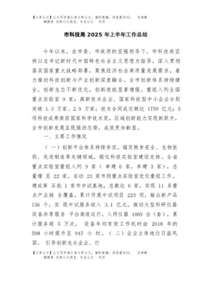 / 【七哥公文】2025年:市科技局2025年上半年工作总结+更多免费公文+VX:QiGeGongWen2024