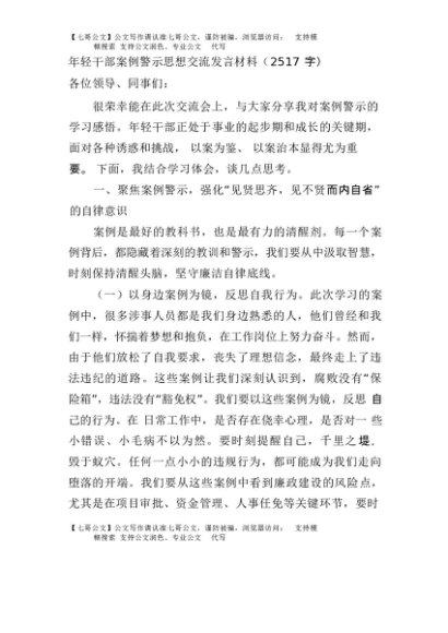 / 【七哥公文】2025年:年轻干部案例警示思想交流发言材料(2517字)+更多免费公文+VX:QiGeGongWen2024