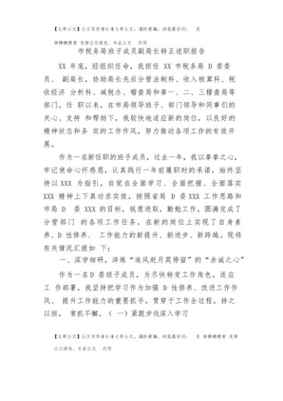 / 【七哥公文】2025年:市税务局班子成员副局长转正述职报告+更多免费公文+VX:QiGeGongWen2024