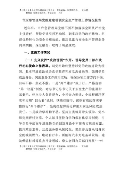 【七哥公文】2025年:市应急管理局党组党建引领安全生产管理工作情况报告+更多免费公文+VX:QiGeGongWen2024