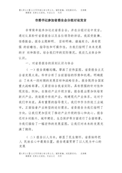 / 【七哥公文】2025年:市委书记参加省委全会分组讨论发言+更多免费公文+VX:QiGeGongWen2024