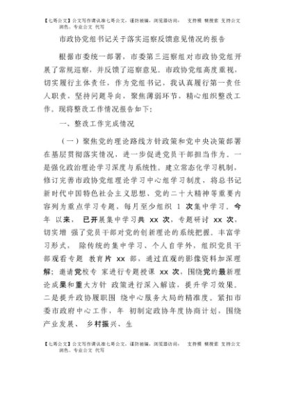 / 【七哥公文】2025年:市政协党组书记关于落实巡察反馈意见情况的报告+更多免费公文+VX:QiGeGongWen2024