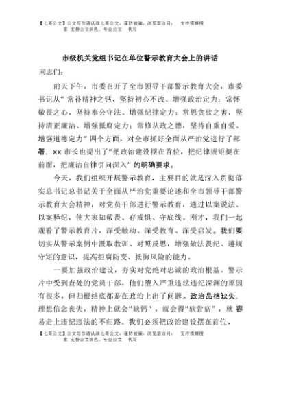 / 【七哥公文】2025年:市级机关党组书记在单位警示教育大会上的讲话+更多免费公文+VX:QiGeGongWen2024