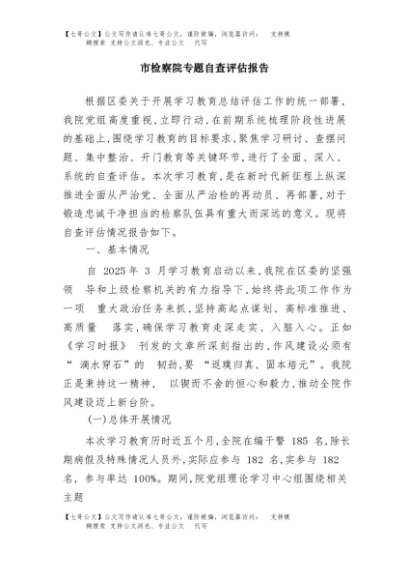 / 【七哥公文】2025年:市检察院专题自查评估报告+更多免费公文+VX:QiGeGongWen2024