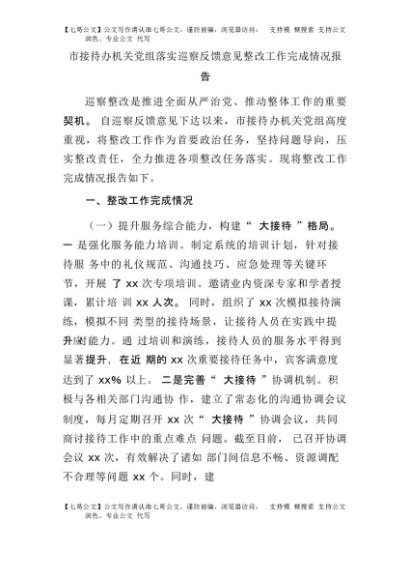 【七哥公文】2025年:市接待办机关党组落实巡察反馈意见整改工作完成情况报告+更多免费公文+VX:QiGeGongWen2024