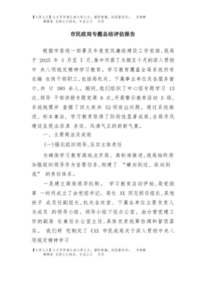 / 【七哥公文】2025年:市民政局专题总结评估报告+更多免费公文+VX:QiGeGongWen2024
