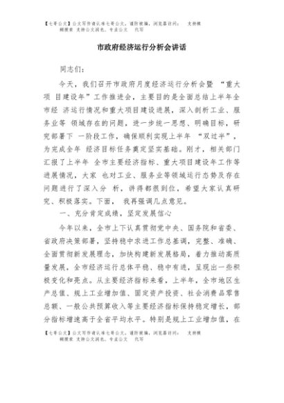 / 【七哥公文】2025年:市政府经济运行分析会讲话+更多免费公文+VX:QiGeGongWen2024