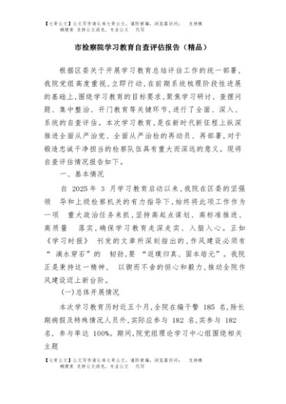 / 【七哥公文】2025年:市检察院学习教育自查评估报告(精品)+更多免费公文+VX:QiGeGongWen2024